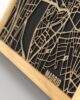 Todos nuestros mapas están fabricados en madera de pino natural de moldura 25 x 20 mm. Mecanizados con corte en inglete con agujero en el marco para colgar, con acabado tintado y con grapas removibles que sujetan las tres planchas.